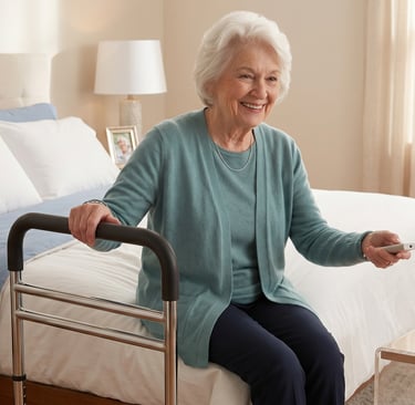 The Problem: The "transfer" phase - moving from lying down to standing up, can cause sudden drops in blood pressure (orthostatic hypotension), leading to dizziness. Without a sturdy object to grab, a parent may grab a nightstand or a lamp, which can tip over.